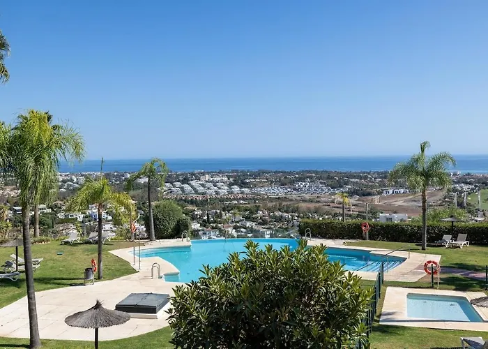プールを提供する200m²のエステポナBenahavis 3Brアパートメントは、フラミンゴス・ゴルフから3.7kmに位置しています。 アパートから自動車で10分のところにコスタ・デル・ソルがあります。